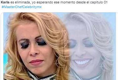 - La polémica actriz española pasó por momentos de intranquilidad, molestia y tristeza durante la semifinal, y este domingo fue eliminada del programa. Te dejamos los memes de adiós de Karla Gascón de MasterChef Celebrity.